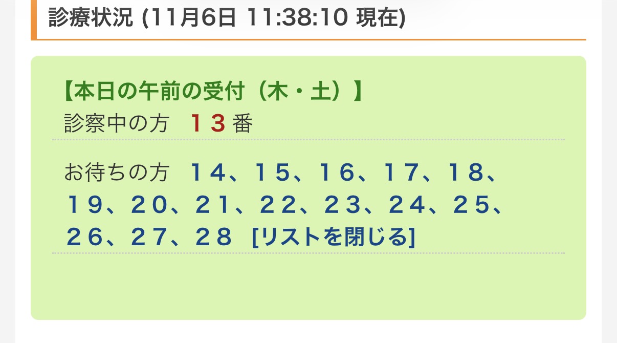 スマホの画面上で自分の受付番号が表示され、待ち時間がリアルタイムで確認できる仕組みになっていました。